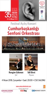 Sevda-Cenap And Müzik Vakfı’nın düzenlediği ve Onur Üyeliğini; Koç Holding, Sabancı Vakfı, Kavaklıdere Şirketler Grubu’nun yaptığı 35.Uluslararası Ankara Müzik Festivali 4 Nisan Çarşamba akşamı, anıtsal piyanist Devlet sanatçısı İdil Biret'in solibtliğinde CSO Konser Salonu’nda başlıyor. Açılış konserinde SCAMV'nın iki danışma kurulu üyesi şef Rengim Gökmen ile İdil Biret buluşmuş oluyor. Konser SCAMV kurucusu Cenap And anısına veriliyor.