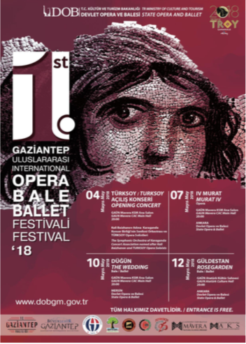 Devlet Opera ve Balesi Genel Müdürlüğü tarafından, Gaziantep Valiliği, Gaziantep Üniversitesi ile Gaziantep Büyükşehir Belediyesi’nin katkılarıyla düzenlenen 1.Uluslararası Gaziantep Opera ve Bale Festivali 4-12 Mayıs tarihleri arasında yapılacak. Temsillerin tümü Gaziantep Üniversitesi Mavera Kültür Sanat Merkezi Ana Salon ve gene üniversitenin Atatürk Kültür Merkezi'nde, saat 20:00’de ücretsiz olarak sahnelenecek.