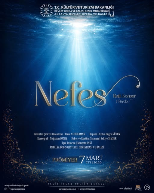 “Nefes” hakkında AntDOB bilgilendirmesi: “Anadolu’nun köklü ezgileri, çağdaş müzik düzenlemeleri ve özgün sahne diliyle yeni bir anlatıya dönüşüyor. Antalya Devlet Opera ve Balesi, ‘Nefes’ rejili konseriyle müzik, söz ve dansın ortak bir dramaturji içinde buluştuğu özgün bir sahne deneyimi…‘Nefes’, her bölümde yeni bir duygu katmanı açarak izleyiciyi zaman ve coğrafyalar arasında dolaştıran bütünlüklü bir sahne anlatısı sunuyor. Türkü geleneğinin taşıdığı kültürel hafıza ile çağdaş yorum anlayışını bir araya getiren eser…”