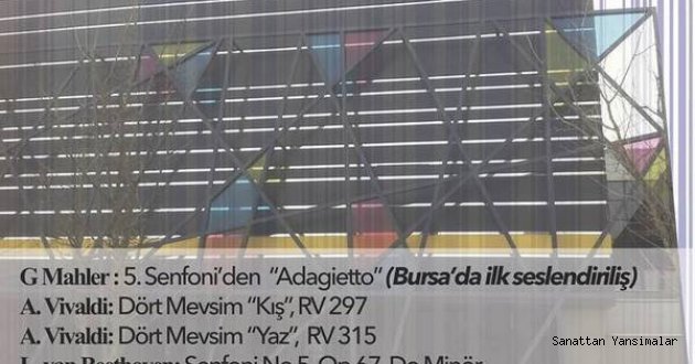 Aynı akşam saat 20.00'de UÜ Devlet Konservatuvarı Gençlik Senfoni Orkestrası, şef S. Dağhan Doğu yönetiminde G.Mahler 5. Senfoni'den ''Adagietto'' bölümünü Bursa'da ilk kez seslendirecek.