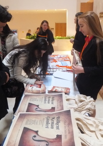 Esas sürpriz sona bırakılmıştı. En küçükleri 7 yaşında olan Bilkent'teki tüm keman öğrencileri sahneye çıktılar. Muhammedjan Turdiev, topluluk için iki parçayı özel olarak düzenlemişti. Önce anonim bir parça olan Venedik Karnavalı'nı Paganini katkılı olarak dinledik. Turdiev, her yaş ve düzeyin seslendirmede katkıda bulunacağı biçimde bir düzenleme yapmıştı, zevkle dinledik. İkinci olarak da Haçaturyan'ın Andante'sine yaptığı düzenlemeyi dinledik. Burada da öğrenciler güzel bir birliktelik örneği verdiler.