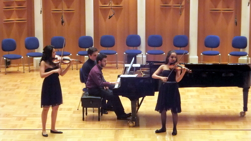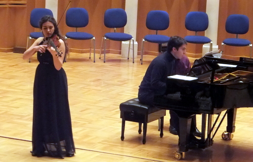 Önce, gelişimini hızla sürdüren Kerem Tunçer, Bach'ın Partitası'ndan iki bölüm sundu. Ardından Demirhan Gökbudak Vieuxtemps'ın Rondino'sunu piyano öğrencilerinden Cem Türkay'ın piyanosu eşliğinde seslendirirken, notaları da ağabeyi Çaykovski Konservatuvarı piyano öğrencisi Yener Gökbudak çeviriyordu. Yener Gökbudak hemen sonra bu kez piyanonun başına geçerek Ezgi Su Apaydın'a Vladigerov'un Ratchentina başlıklı parçasında eşlik etti. Ilgın Top ve Deniz Şensoy ise Sarasate'nin Navarra'sını Cem Türkay eşliğinde sundular.