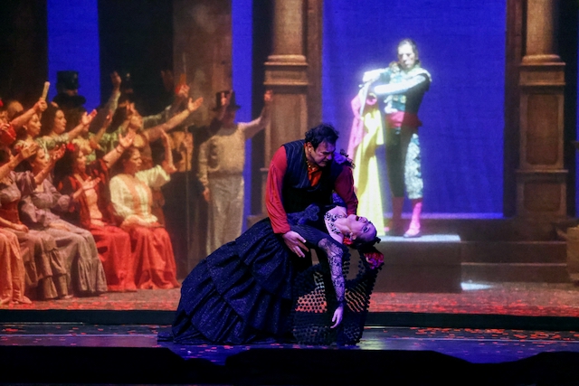Don José’nin askerliği bırakıp kaçakçılara katılmasını üniformadan pelerine geçişle sembolizmi; Carmen’in fal sahnesinde (Lammermoor’lu Lucia’nın delirme sahnesi gibi) yerden yüzüne yansıtılan “büyüsel” kırmızı ışık; üçüncü perdede flüt solo ile başlayan fonda dolunayla romantik klasik bale (antrakt müziği); dördüncü perdede boğa güreşi arenası önünde “gerçekçi” yelpaze satıcıları; ölümü de çağrıştıran fantastik siyah boğa ile boğa dövüşçüleri dansı; finalde Don José ile Carmen ölümüne kavga ederlerken Escamillo’nun tül perdenin gerisinde kendi dünyasında hayranlarının arasında Carmen’i aklına getirmeden bencilce kendi zaferini yaşayışı öyle çok katmanlı ki, performans konunun önüne çıkıyor ve Flamenko, klasik bale, modern dans, vals, eskrim, toplu kavga ve benzeri devinimlerle bezeli her türlü unsur örneği içeren “Vilan sanatı”na dönüşüyor. Tüm sahneleme seçenekleri elbette rejisörün tercihidir ve onun değeridir.