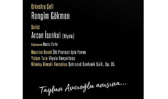 Hacettepe Senfoni Orkestrası 4 Mart 2026 Çarşamba akşamı saat 20.00’de vereceği konser, orkestranın geçtiğimiz ay oda müziği etkinliği için bulunduğu Bursa’da, Uludağ Üniversitesi Devlet Konservatuvarı’nda geçirdiği kalp atağı sonucu yaşamını yitiren korno sanatçısı Tayfun Avcıoğlu anısına adandı.Şef Rengim Gökmen’in yöneteceği HSO, bu konserde başarılı viyola solisti Arcan İsenkul’a eşlik edecek. İsenkul Yalçın Tura’nın viyola konçertosunu seslendirecek. Başkemancı sandalyesinde Burcu Zorlu’nun oturacağı konserin programı şöyle:Maurice Ravel, ”Ölü Prenses için Pavan”Yalçın Tura, Viyola KonçertosuNikolay Rimski-Korsakov, Şehrazad Senfonik Suiti, Op. 35.Konser, Hacettepe Üniversitesi Beytepe Yerleşkesi'ndeki Ankara Devlet Konservatuvarı büyük salonunda ve girişler ücretsiz..