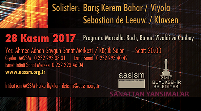 Viyolacı Barış Kerem Bahar, 28 Kasım 2017 akşamı Hollanda utrecht operası klavsencisi sebastian de leeuw ile İzmir'de bir resital veriyor. Barok dönemin yanı sıra ilk seslendirilişi yapılacak iki Türk eseri de programda yer alıyor.