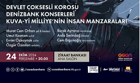 29 Ekim Cumhuriyet Bayramı haftasında Murat Cem Orhan'ın Nazım Hikmet’in ölümsüz eseri "Kuvâ-yi Milliye Destanı"ndan esinlenerek bestelediği "Kuvâ-yi Milliye'nin İnsan Manzaraları" isimli oratoryosu, 24 Ekim 2024 akşamı Devlet Çoksesli Korosu ve oda müziği grubu ile sahneye taşınacak. CSO Ada Ankara Ana Salon’da yer alacak bu özel konser, Kurtuluş Savaşı'nın ateşten günlerini, Nazım'ın dizelerindeki umut dolu anılarını ve Anadolu'nun isimsiz kahramanlarının hikâyelerini izleyiciyle buluşturacak.