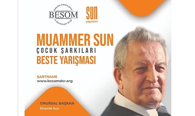 Besteciler, Orkestra Şefleri ve Müzikologlar Birliği-BESOM, kurucusu ve alanın önemli bestecisi Muammer Sun (1932-2021) anısına bir Çocuk Şarkıları Yarışması düzenledi. Katılımcılardan en çok iki dakika süreli, piyano eşlikli çocuk korosu için şarkı bestelemeleri isteniyor.