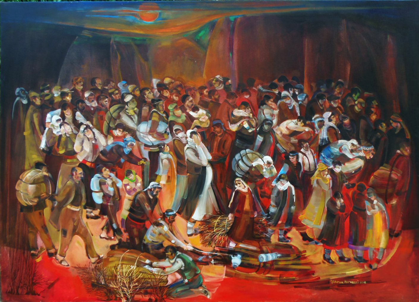Resimlerin çoğunu Pekmezci’nin memleketi olan Çankırı’dan düğünler, kış ve kar eğlenceleri, adak ağaçları gibi yerel izlenimler oluştururken, yaşamla ilgili konular da yer alıyor. Bu konulardan ve ressamın isminden dolayı sergiye “yurdumun insanlarına, doğasına şükranla” başlığı konuldu.