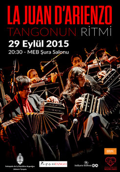 Arjantin'den gelen "La Juan D'Arienzo" Tango Orkestrası, Türkiye'de ilk konserini Ankara’da 29 Eylül 2015 Salı akşamı, MEB Şura Salonu’nda verecek. SCAMV tarafından düzenlenen konserin geliri meme kanserli kadınların müzik eğitimi için kullanılacak.