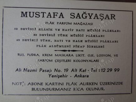 Sevgili okurlarım, bu yazıyı hazırlarken dile kolay, tam yarım yüzyıl geriye gittim. Sadece dolaştığım pasajları, çarşıları, mağazaları değil, zamanı paylaştığım insanları da hatırladım. İyi ki tüm bunları yaşamışım diye düşünürken; hem sevindim, hem hüzünlendim. O dönemleri sadece anılarımda değil, koleksiyonumda hâlâ koruduğum plâklarda da yaşatmaya devam ettiğim için kendimi mutlu hissettim. Bir eksiğimiz şu ki, artık ne o mağazalar yerinde, ne de o insanlar. Gönül arzu ederdi ki, Ulus’a çıkıp Modern Çarşı’ya, Kızılay’a inip Tansel’e, Soysal Çarşısı’na girip Cemil Plâk’a uğrayabilelim; plâkları karıştırıp, aralarından sevdiklerimizi alabilelim. Bu yazımız o geçmişe, o insanların anısına armağan olsun. Sevgiyle…