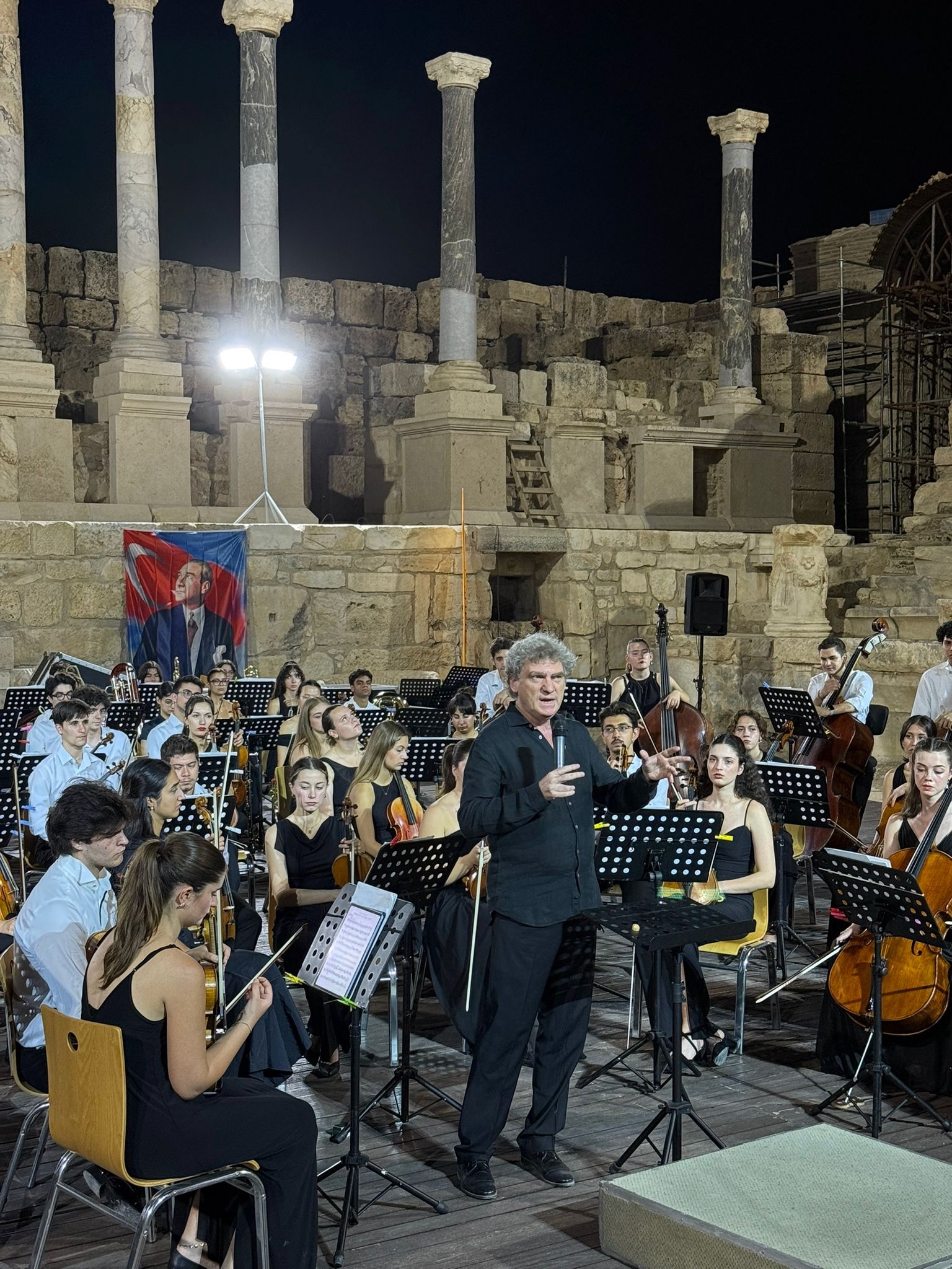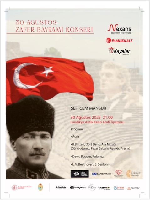 Tarih ve coğrafya bütünlüğünü kucaklayan, genç zihinlerin pırıltısını hissedip bu içinde yüzdüğümüz kültürel çölleşme ve sosyo-politik karanlığın yarattığı karamsarlık bulutlarını dağıtan bir etkinliğe Denizli’de tanık olduk. 30 Ağustos 2025 Cumartesi akşamı, Denizli’ye 6km mesafede, Büyük Menderes Ovası’nın orta kesimlerinde konumlanan Laodikeia (Λαωδικεία) antik kentinin büyük antik tiyatrosunda, Türkiye Gençlik Filarmoni Orkestrası (TUGFO) müzikseverlere nefes kesici bir konser verdi.