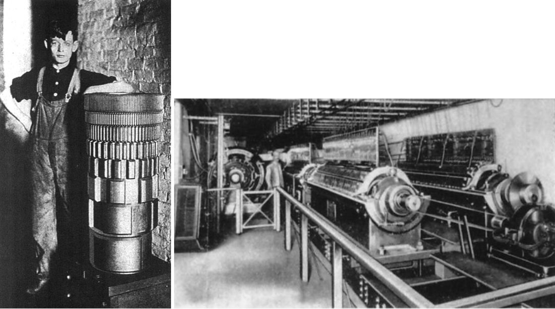 Bir perdeyi (frekansı) üreten disklerden bir tanesi (solda). Cihazın rotor ünitesi (sağda) (Kaynak: https://120years.net/).