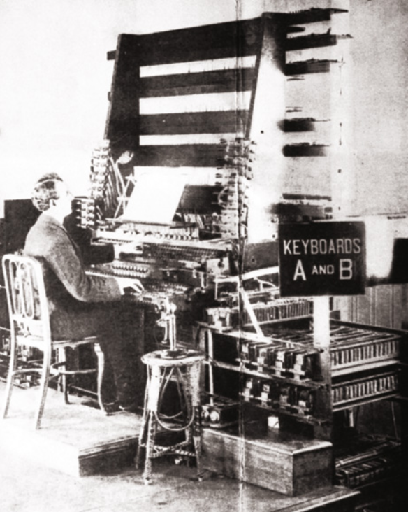 1907’de Telharmonic Hall’daki Telharmonium’un klavye kontrol ünitesi (Kaynak: https://120years.net/)