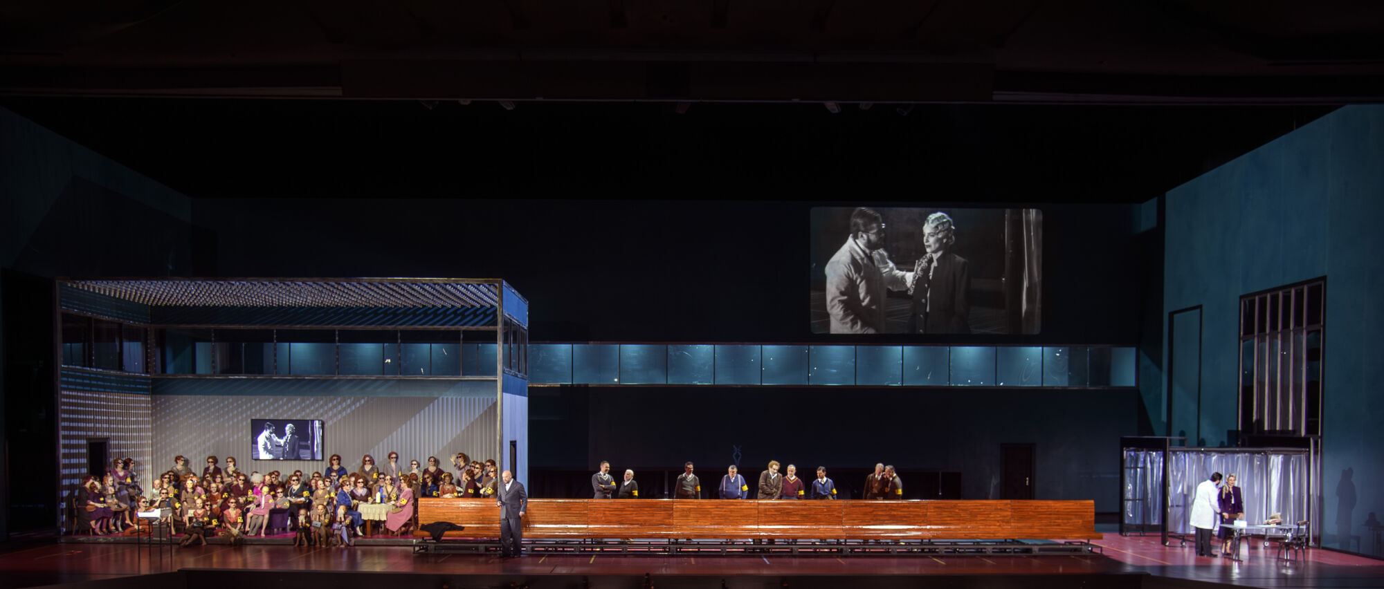 Krzysztof Warlikowski’nin sahnelemesi hakkında birkaç sözüm var. Ben modern sahnelemeleri severim, operayı bugün canlı tutan şey eski eserlerin yeni yorumlamaları. Fakat Warlikowski sahneye aynı anda o kadar çok şey koymuş ki, referansların yarısını kaçırdığıma eminim. Başa dönersek, esere en büyük dokunuşu uvertürde, Macbeth çiftinin çocuk sahibi olamamasını odağa alarak yapmış. Lady Macbeth’i bir jinekolog randevusunda görüyoruz, arkadaki ekrana siyah beyaz yansıyan yüz ifadesinden anladığımız kadarıyla çocuk sahibi olamayacağını öğreniyor. Bu Macbeth’lerin sorumlu olacağı aksiyonlar için güzel bir zemin oluşturmuş.