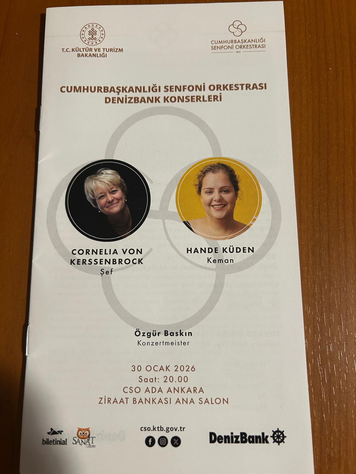 Ankara’nın klasik ayazı, yağmur ve sert rüzgârına rağmen 30 Ocak 2026 Cuma gecesi, CSO Ada Ankara Ziraat Bankası Ana Salon’u dolduran dinleyiciler, haftanın yorgunluğunu unutturan nitelikli bir konsere tanıklık etti. Dışarıda soğuk ve yağmur altında sokaklar, içeride ise müziğin birleştirici sıcaklığı hâkimdi.