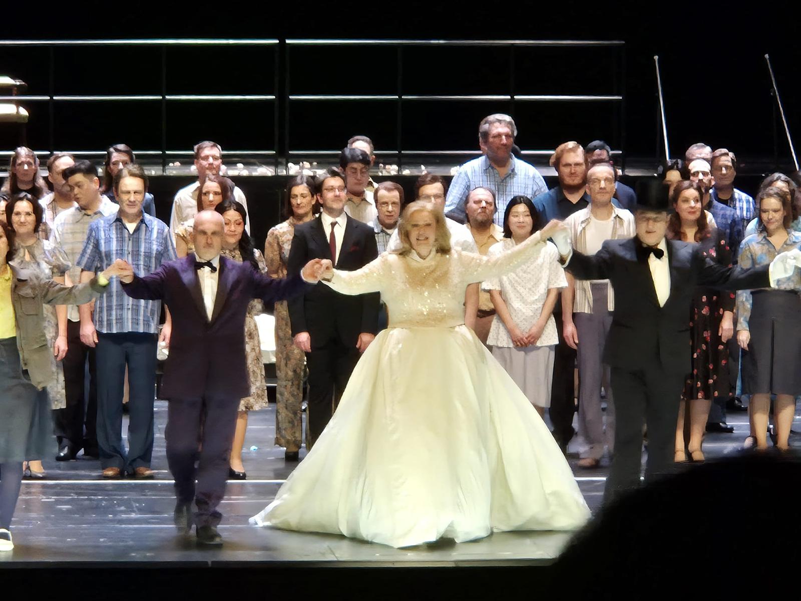 Deutsche Oper’in modern ve geniş salonu, tüm teknik sınırlamalara rağmen güçlü akustiğiyle akşamı taşıdı. Yağmur altında gelen seyirciler, paltolarını vestiyere bırakıp üç saat boyunca bu zorlu ama özel temsile tanıklık etti.