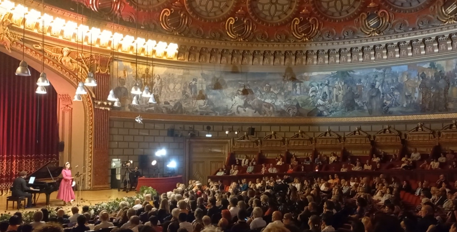Saray Salonu’ndaki konser 2 saat sürdü; 21.30’da sona erdi. Ateneum’daki konserimiz 22.30’da idi. İki salon arası mesafe çok yakın; 10 dakika yürüme ile Ateneum’a vardık. Fuaye ve salonun tadını çıkarttık; ‘piyano eşliğinde soprano ezgileri’ için locadaki yerimiz aldık.