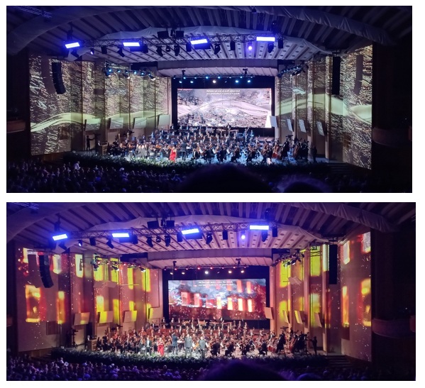 Sanatçıların zenginliği yanında sahnenin arkası ve iki yanında multimedya gösterisi yer alıyordu. Bu da sahneyi genişletiyor ve görsel bir zenginlik / hareket veriyordu. Çok güzel bir konser olduğunu tahmin edeceğinizi umuyorum.