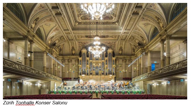Konserde, 1868’de kurulan Zürih Konser Salonu (Tonhalle) Orkestrası sahne aldı. Orkestra Zürih’te tarihi Konser Salonu binasını kullanıyor ve onun ismini taşıyor. Tonhalle 1893-1895 tarihleri arasında yapılmış görkemli bir yapı. Yanına eklentiler inşa etmek için 1938’de büyük bir bölümü yıkılıyor; ancak giriş cephesi ve tarihi salon aynen korunuyor.