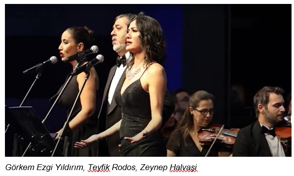 Konserde, daha öncelerde de Livaneli konserlerine katılmış tecrübeli sanatçılar vardı; soprano Görkem Ezgi Yıldırım, mezzo soprano Zeynep Halvaşi ve bas Teyfik Rodos bazen birlikte, bazen tek tek solist olarak yer aldılar. Ayrıca, bağlama üstadı Erdem Şimşek ve (duvar kenarı merdivende oturabildiğim için göremediğim- özür diliyorum) kanun sanatçısı orkestraya eşlik ettiler. Bağlamada şelpe çalınınca, kanunda solo taksim yapılınca salonun beğenisi görülmeye değerdi.