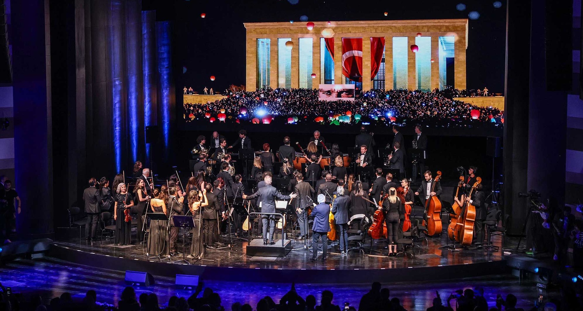 Konser bitiminde arka perdeye Anıtkabir yansıtılmıştı. Seyirciler sahnede sanatçıları ve orkestrayı görüyorlardı; orkestra merdivenlerdeki kalabalık ile bütünleşmişti ve devamında Anıtkabir. Anlamlı ve coşkulu bir manzara oluşuyordu.