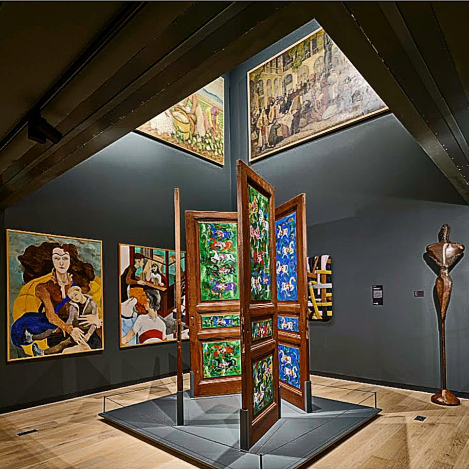 Müzenin sonradan eklenen çekirdek yapısında kalıcı olarak sergilenen iki büyük yapıt var. Biri, Fevzi Karakoç’un sanat yapıtına dönüştürdüğü, binanın özgün yapısından çıkan dört kapı: Geçmişe saygılı bir selam…