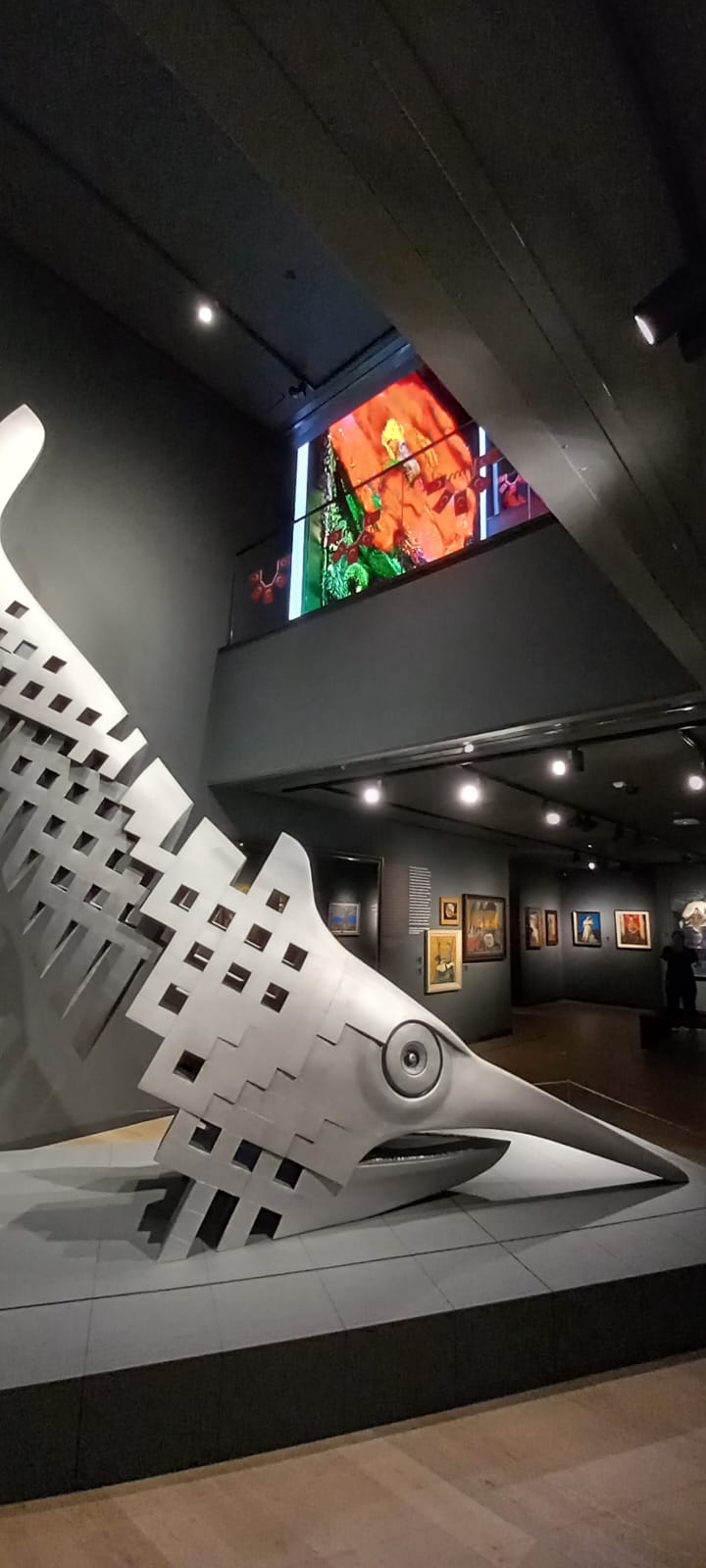 Bir başkası, Rahmi Aksungur’un Özlem adlı kılıçbalığı heykeli… Heykel, kılıç balığının İstanbul’a, maviye özlemini anlatırken çevre sorunlarına dikkat çekmek istiyor. Bu iki yapıt dışında dikkati çeken bir başka iş yine yeryüzünün en güncel sorunu çevreyle ilgili: Geçtiğimiz günlerde, Müze’nin kuruluşunun bu ikinci yılında koleksiyona eklenen ilk yapay zeka veri heykeli Türkiye’deki “endemik türlerin kırılgan güzelliğine odaklanıyor”.
