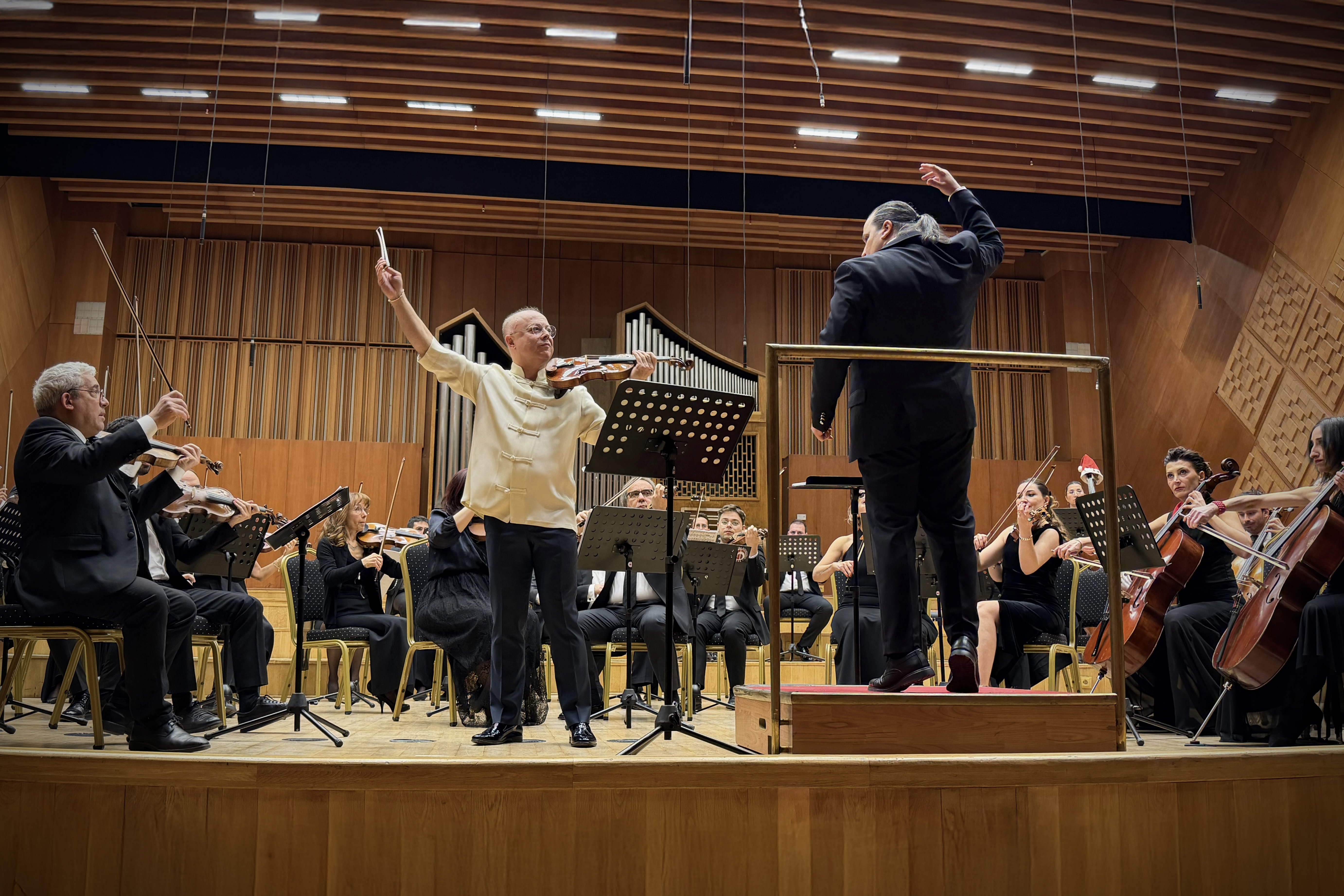 Gecenin solisti Devlet Solist Sanatçısı Tuncay Yılmaz, bu anlayışın günümüzdeki güçlü karşılıklarından biri olarak sahnedeydi. Yılmaz’ın virtüozitesi, teknik gücü sergileme telaşına düşmeyen; müziğin doğal akışına hizmet eden olgun bir yorum anlayışına dayanıyor. Kemanından yükselen ses, parlaklığını zorlayarak değil; tonun içinden, cümlenin mantığından ve müzikal nefesin sürekliliğinden doğuyordu. Yılmaz’ın Mozart yorumunda, hız ve çevikliğin ötesinde, klasik denge duygusu ve form bilinci belirleyiciydi. Bu, virtüozitenin sessiz ama ikna edici hâlidir.