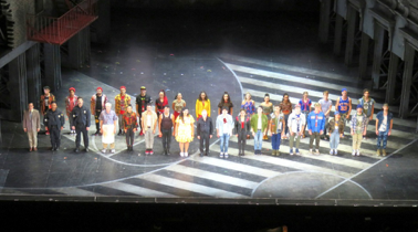 Batı Yakası Hikâyesi'nin 21 Eylül 2025 performansının sonunda Los Angeles Opera sanatçıları izleyicileri selâmlarken.