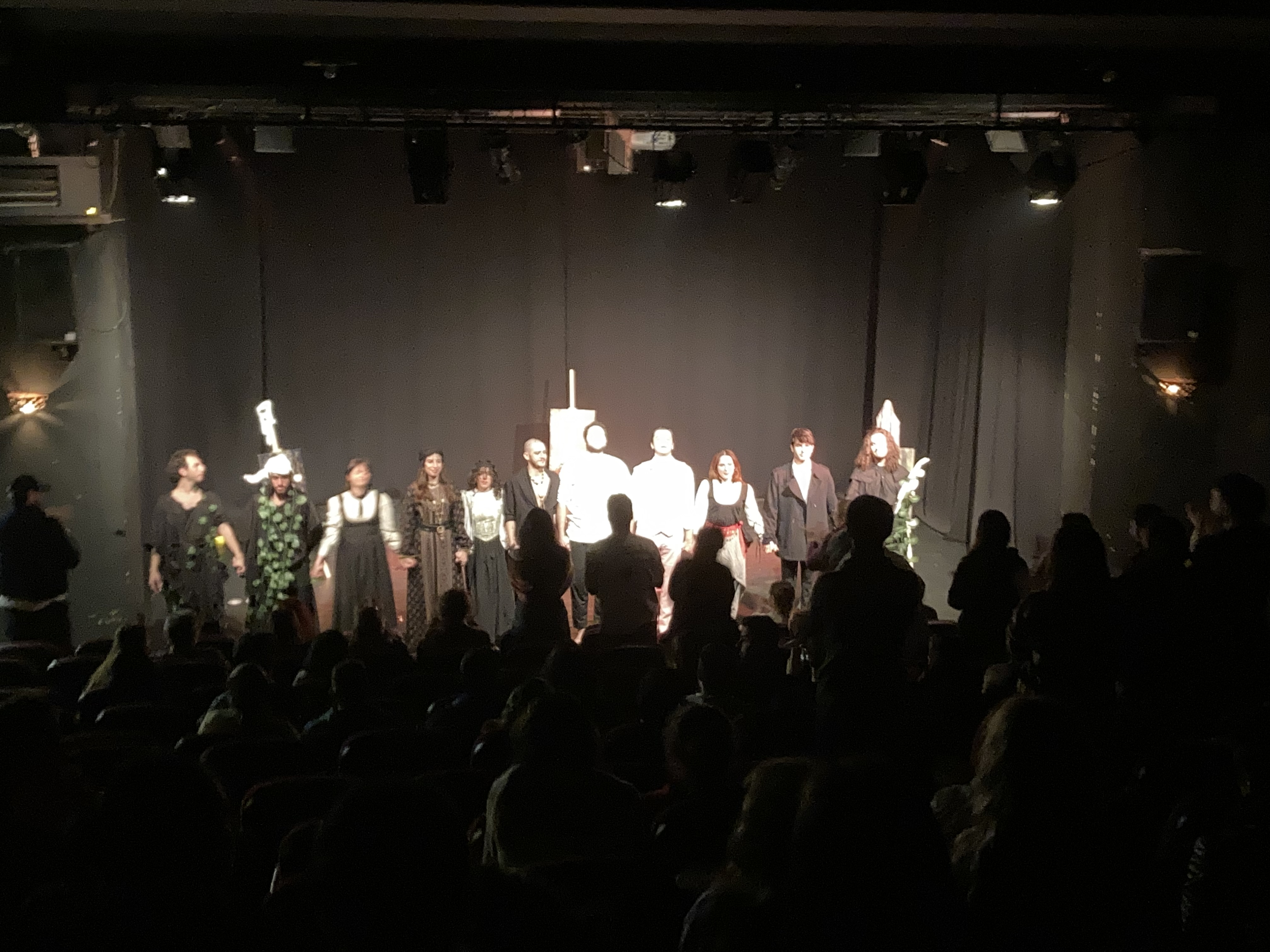 İzlenimlerim ve Temsil Sonrası Sohbet: Her karakterin kendi içinde bir oyun barındıran soyut masal tarzında felsefi konusu itibarıyla sahneleme açısından basit bir oyun değildi. Deneysel sahneleme yer yer doğaçlama da içeriyordu. İzlediğimiz temsilin, dünya prömiyerinden sonraki sekizinci temsil olmasına karşın üzerinde çok düşünülecek ve konuşulacak bir soyut masal eseri ve performanstı. Dekor açısından bir tuvale dayanmış orman tabloları; kostüm ve aksesuar açısından heybe, palto, baston, maskeler ve benzeri yalın ama sembolik unsurlar içeriyordu. “Yol ince ve uzundur, Yol zamansızdır, Yol her şeyi görür, Ölüm hatırlanmaz” ve buna benzer replikler öylesine düşündürücüydü ki bilinçaltımda Amin Maalouf’un “Uzaktan Aşk” adlı eserinin bende yarattığı duyguyla tam tanımlayamadığım bir bağlantı kurmama yol açtı.
