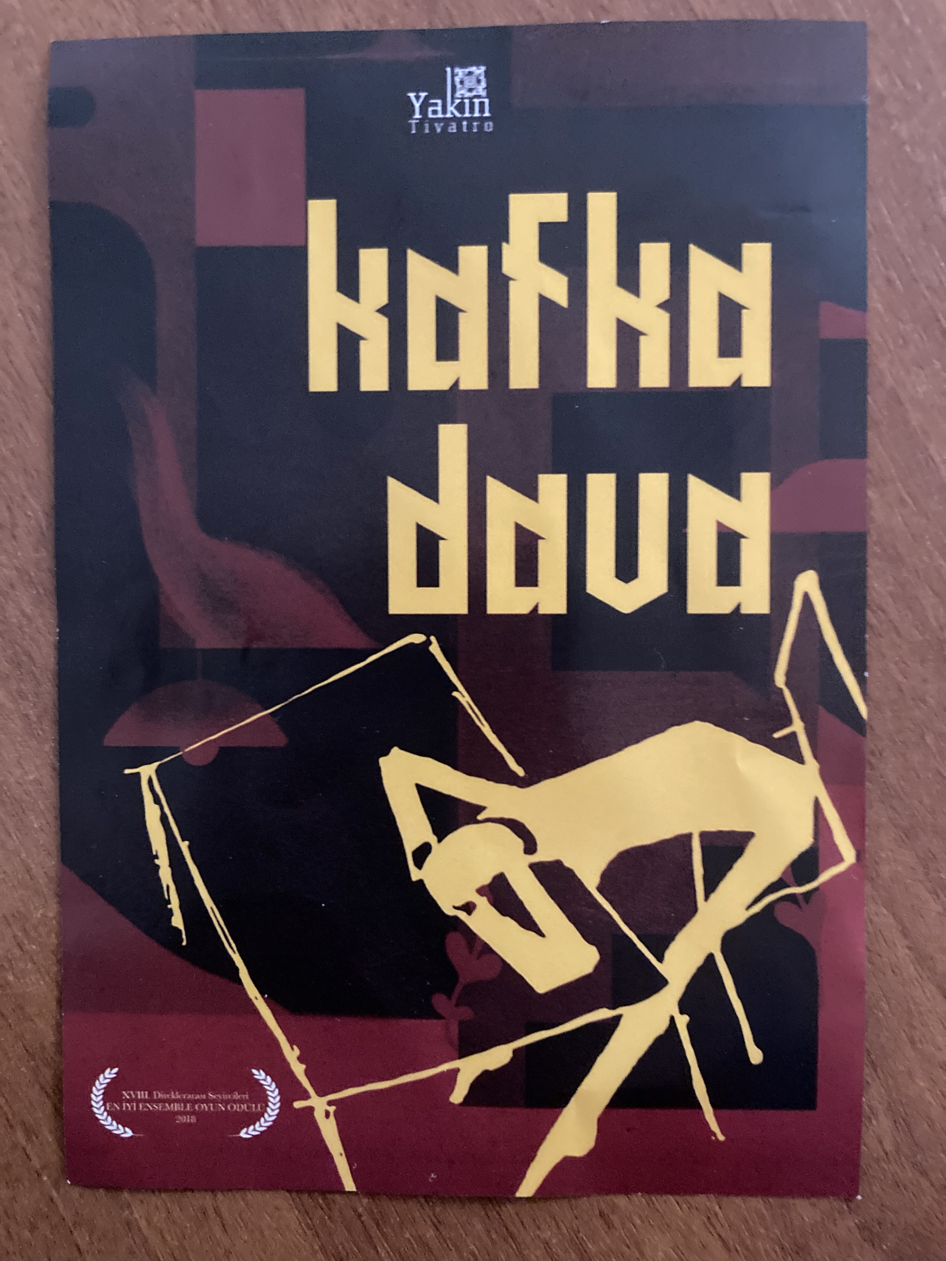 Künye: F. Kafka’dan uyarlayan ve yöneten: Öncü Alper; Kostüm-dekor-ışık: Yakîn tiyatro; Koreografi: Gül Ekşi; Müzik tasarım: Mertcan Ercan, Ayça Sipahioğlu; Görsel tasarım: Sıla Sert. Tek perde, 75 dakika, 13+ Dram.