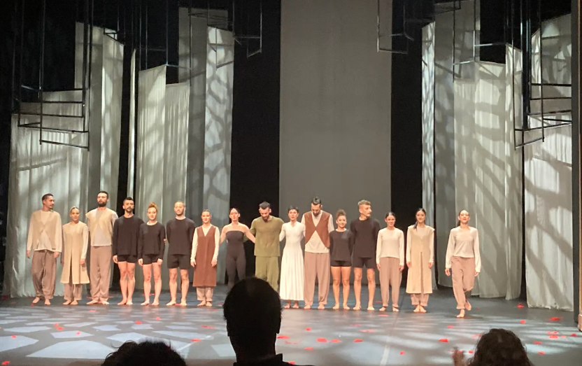 Çıplak ayakla dans edilen koreografisinde ne teatral jestler veya işaret dili ne klasik bale adımları yer alıyor, ne de basite kaçan akrobatik hareketler kullanmış. Aksine salt beden ifadesi ile hem olayları, hem duyguları ve hem de sözel diyalogları anlaşılır kılmış, üstelik “zaman” kavramını da hissettirmiş. Koreografi ve sahneleme basit simetrik ve sırayla devinim yerine gerçek yaşamın karmaşıklığına betimleyen asimetrik simetri hakimdi. Öylesine ki, Brueghel’in toplumsal temalar işleyen tabloları gözümün önüne geldi. Kâh köyde çiftçiler tarlada çalıştı, kâh şehirde insanlar iş çıkışı kalabalık sokaklarda karşıdan karşıya geçtiler. Hepsi sorunlarını ve hayat deneyimlerini birbirleriyle paylaştılar. Şehir duygusunu veren unsurlar başlangıçtaki çapraz sokak ışıkları ve çatı ışıklarına ek olarak dekor ve tabii toplu danslardı. Keza sonlara doğru ışıklar kırmızılaşınca hem iklimsel sonbahar ve kış, hem de metaforik hastalık ve onu izleyen ölüm hissedildi. Rüzgârla uçuşan yan perdeler ise yaşamın ürpertici bir hızla geçtiğini vurguluyordu.