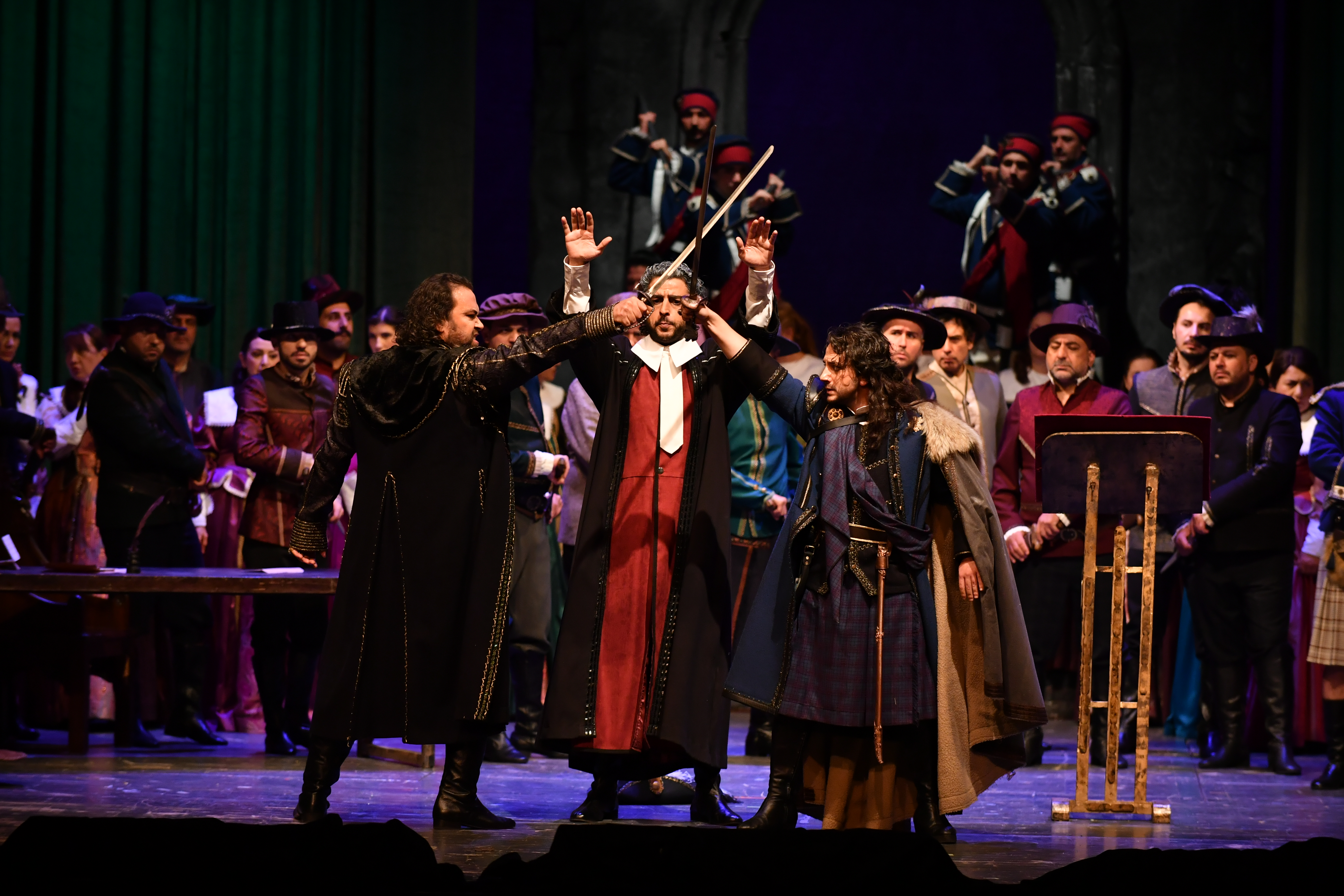 Arda Aktar (15 Kasım), kişisel ihtirasların Enrico’sunu sahnede tipik teatral duruş pozisyonları ile kötü adam-mağrur asilzadeyi güçlü ve etkili beden dili ile yorumladı. Tokat ve diz çöktürme sahnesindeki inandırıcılığına ek olarak, duygusal mimik ve jest azlığı da tipik İskoç donukluğu gerçeği ile uyumluydu. Sesine gelince, Aktar gerçek bir lied ustası. Bu sayede bel canto onun için çocuk oyuncağı. O denli net, temiz, abartısız ama yoğun şekilde söyledi ki bu rolün onun için biçilmiş bir kaftan olduğunu düşündüm.