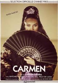 Bu filmlerden Carlos Saura’nın Flamenko biçemindeki Carmen’i herhalde en unutulmaz olanıdır (Oyuncular: A. Gades, L. del Sol, P. Del Lucia ile soprano R. Resnik, tenor M. del Monaco, bariton T. Krause, 1983). Konusu bir dans grubunun danslı şarkılı Carmen gösterisi hazırlıkları sürecinde iki sanatçı arasındaki sancılı bir aşk öyküsüdür. Ana karakter romandaki gibi erkek, yani Don José, gösterinin koreografisini hazırlayan ve gösteride Don José rolünü oynayan sanatçıdır. Koreograf ile Carmen rolünü oynayan özgür ruhlu dansçı arasındaki ilişki aynı Don José ile Carmen arasındaki gibi, tutkulu aşk ve kıskançlık içeren bir ilişkidir. Olayların sonu da aynı şekilde noktalanır, koreograf kıskandığı genç dansçı kadını bıçaklayıp öldürür.