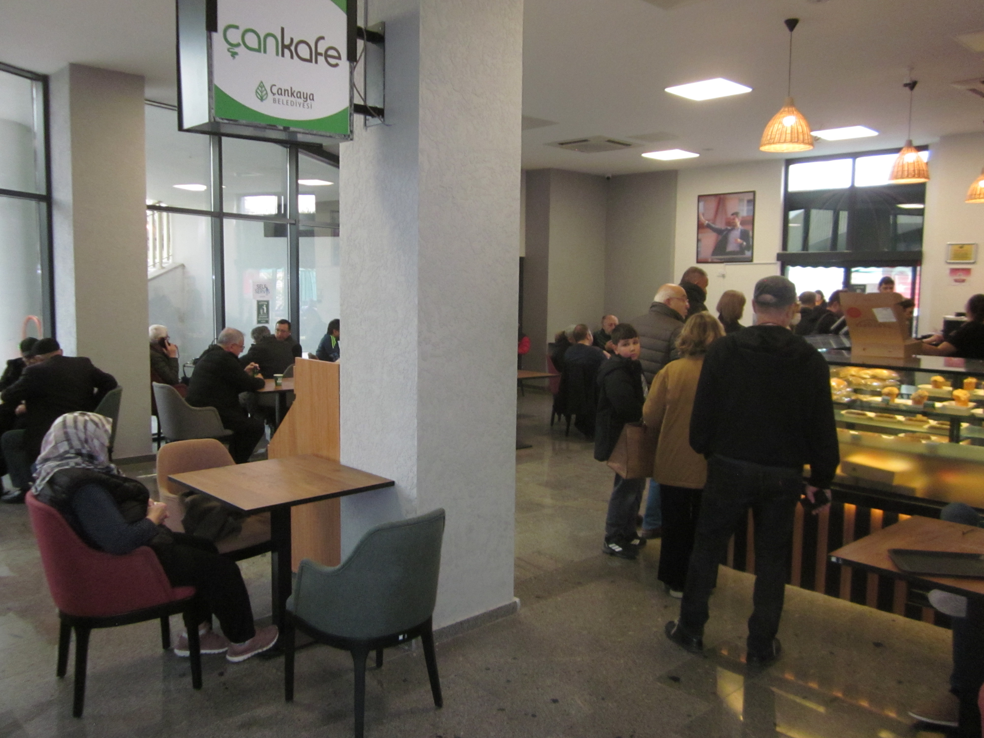 Çankafe, kısa sürede özellikle yürüme uzaklığındaki yakın çevresi sakinlerinin gözdesi ve uğrak yeri haline gelmiş. Son günlerde iç oturma alanı, dış mekânının bir kısmı camekanla kapatılarak genişletilmiş. Self-servis hizmet veren kafede sadece kredi kartı kullanılıyor. Seçeneği dar olmakla birlikte, temiz ve sağlıklı mönüsü hayli rağbette. Herkes kendine göre bir şeyler bulabiliyor. Hafif pastalardan oluşan tatlıları 75 TL., istek olduğunda ısıtılan sandviçleri 75 TL., 5 tür kahvenin en pahalısı 60 TL., Türk kahvesi 40 TL., çay 10 TL’na satılıyor. Kruvasan ve boyoz da var. Bu fiyatlar, özel işletmelerin yarısı, hatta 1/3’ü oranında. 17.1.2025’te belirlenen bu fiyatlar, 14.2.2026 itibariyle halen aynen geçerli. Hal böyle olunca 08.00-21.30 arasında günün hemen her saatinde, kasa önünde sürekli kısa kuyruklar oluşuyor. Tezgah arkasında çalışan, kimi engelli 2-3 personel siparişleri yetiştirmede zorlanıyorlar. Ama kafenin varlığından hoşnut olan çevre sakinleri, gördüğümüz kadarıyla gecikmelerden pek de şikayetçi değiller.