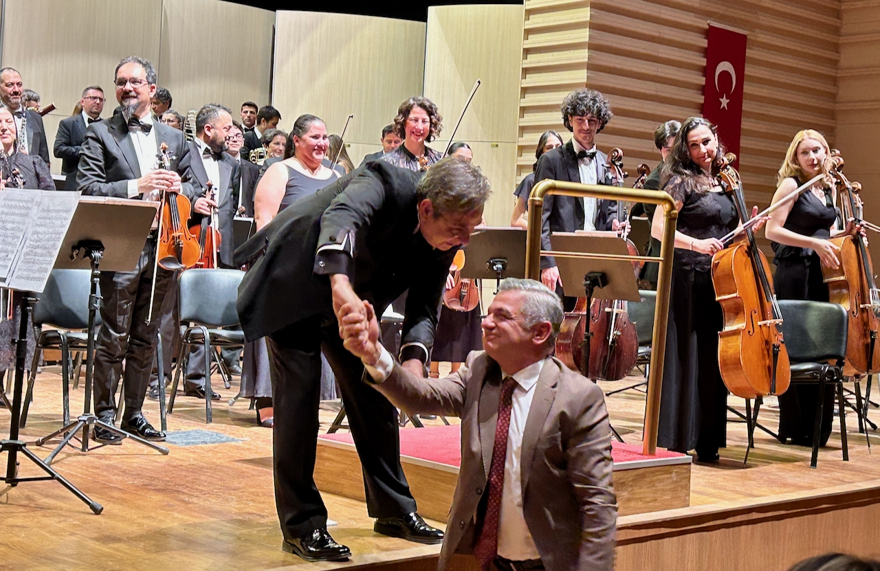 Orkestranın müzik yönetmeni şef ve ADK’nın yeni müdürü Prof. Burak Tüzün’ü de alkışlatan Işın Metin, onu sahneye de çekmeye çalıştı ama başaramadı. Tüzün, güleç yüzüyle Metin’i kutlayıp kendini bu gösteriden kurtardı. Genellikle konserlere pek gelmeyen Hacettepe Rektörü Mehmet Cahit Güran da dinleyiciler arasındaydı.