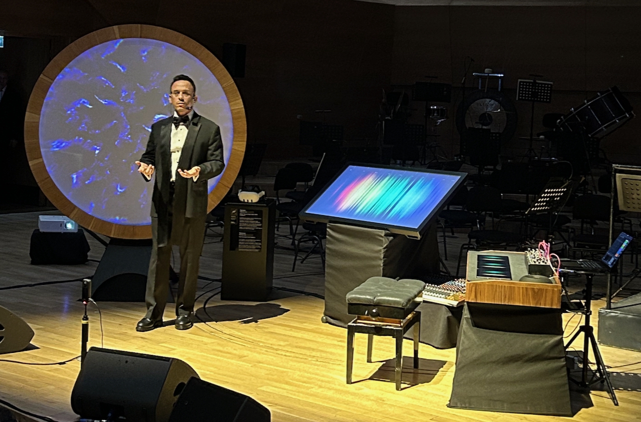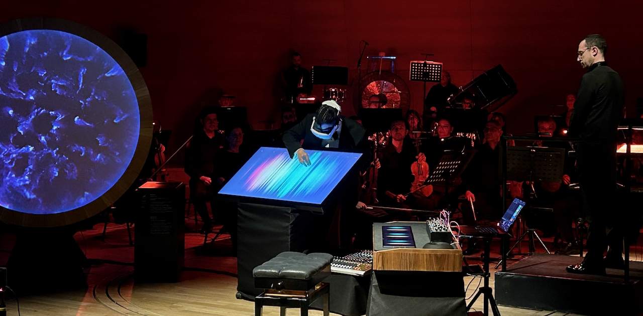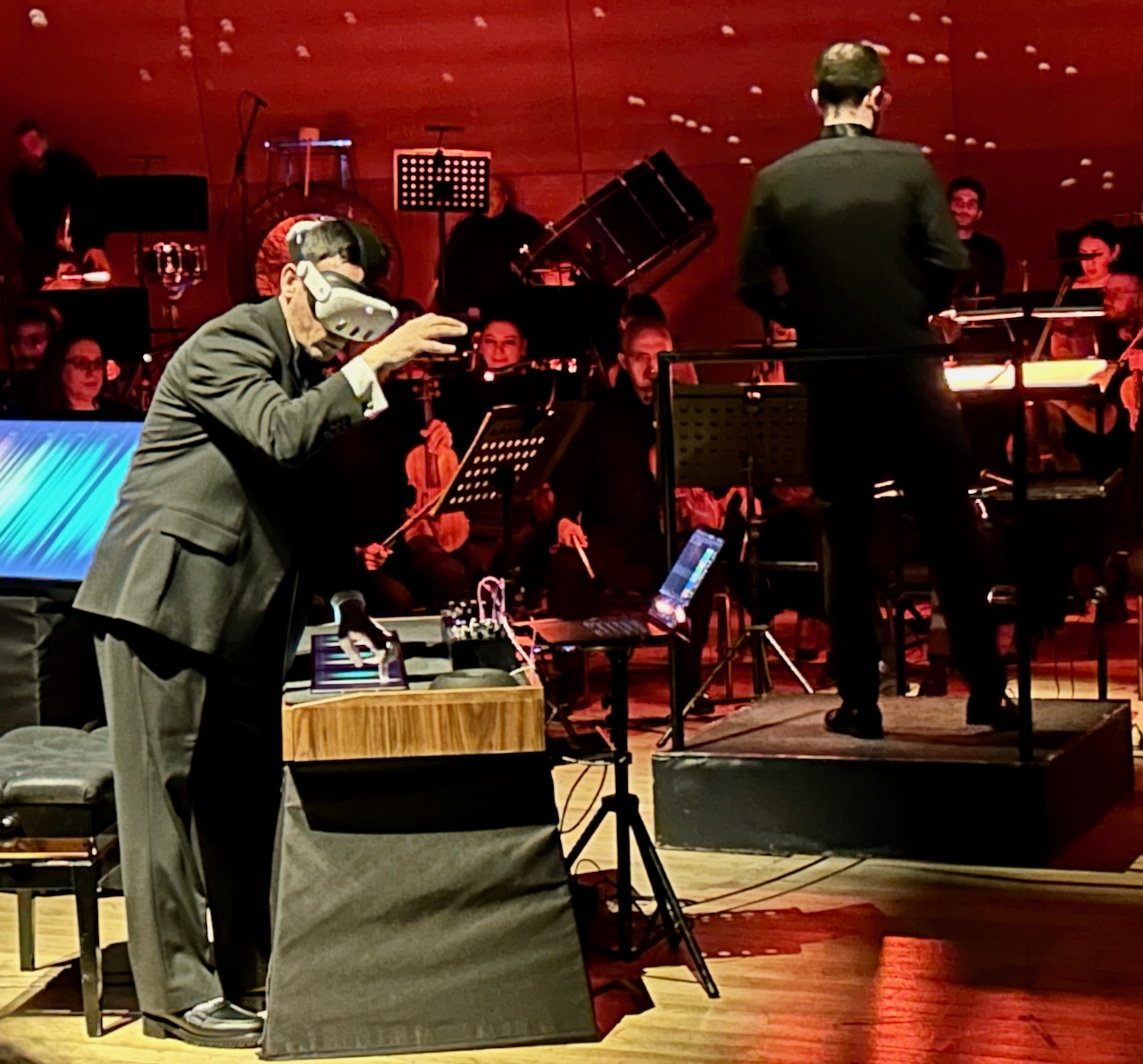 CSO program kitapçığındaki özgeçmişinde Mehmet Ünal kendisini “disiplinlerarası besteci, yeni medya sanatçısı ve yaratıcı teknoloji geliştiricisi” olarak tanımlıyor. Sahneye çıktığında seslendirme başlamadan önce dinleyiciye hitaben yaptığı bilgilendirici konuşmada ise kendini bir “deneysel besteci” olarak tanımladı. Sahnede yer alan “spektra, faz ve meta” diye adlandırdığı, “yeni nesil dijital enstrümanlar” olarak tanıttığı kendi özel tasarımı olan çalgılar hakkında bilgi verdi.