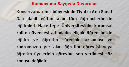 Son günlerde kültür-sanat sayfalarında Hacettepe Üniversitesi Ankara Devlet Konservatuvarı Tiyatro Bölümü’nde öğrencilerin hocasız kaldığı, Devlet Tiyatroları Genel Müdürü’nün öğreticilerin izinlerini onaylamadığı yolunda haberler yer alıyor.