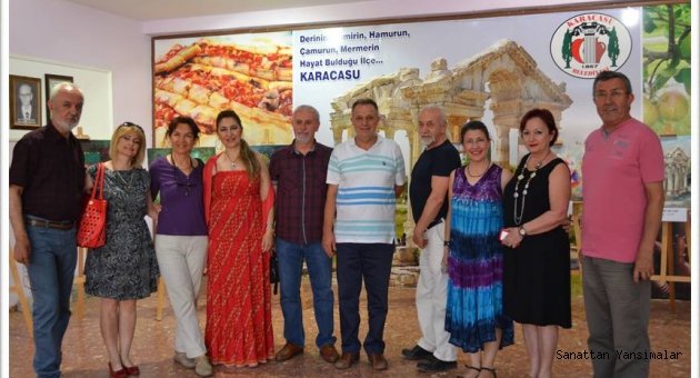 Bir gün de Afrodisias'ta resim çalıştık. Afrodisias tapınağının kapısı Tetrapylon'a bakan geniş yeşil alanın kenarında ceviz ağacının altına şövalelerimizi kurduk. O tarihi havayı teneffüs ederek, geçmişin ışığında yaptık resimlerimizi... Son gün Karacasu Belediye binasının giriş salonunda resimlerimizi sergiledik. Sanatsever B Başkanı Mustafa Büyükyapıcı gene bizi yalnız bırakmamıştı.”